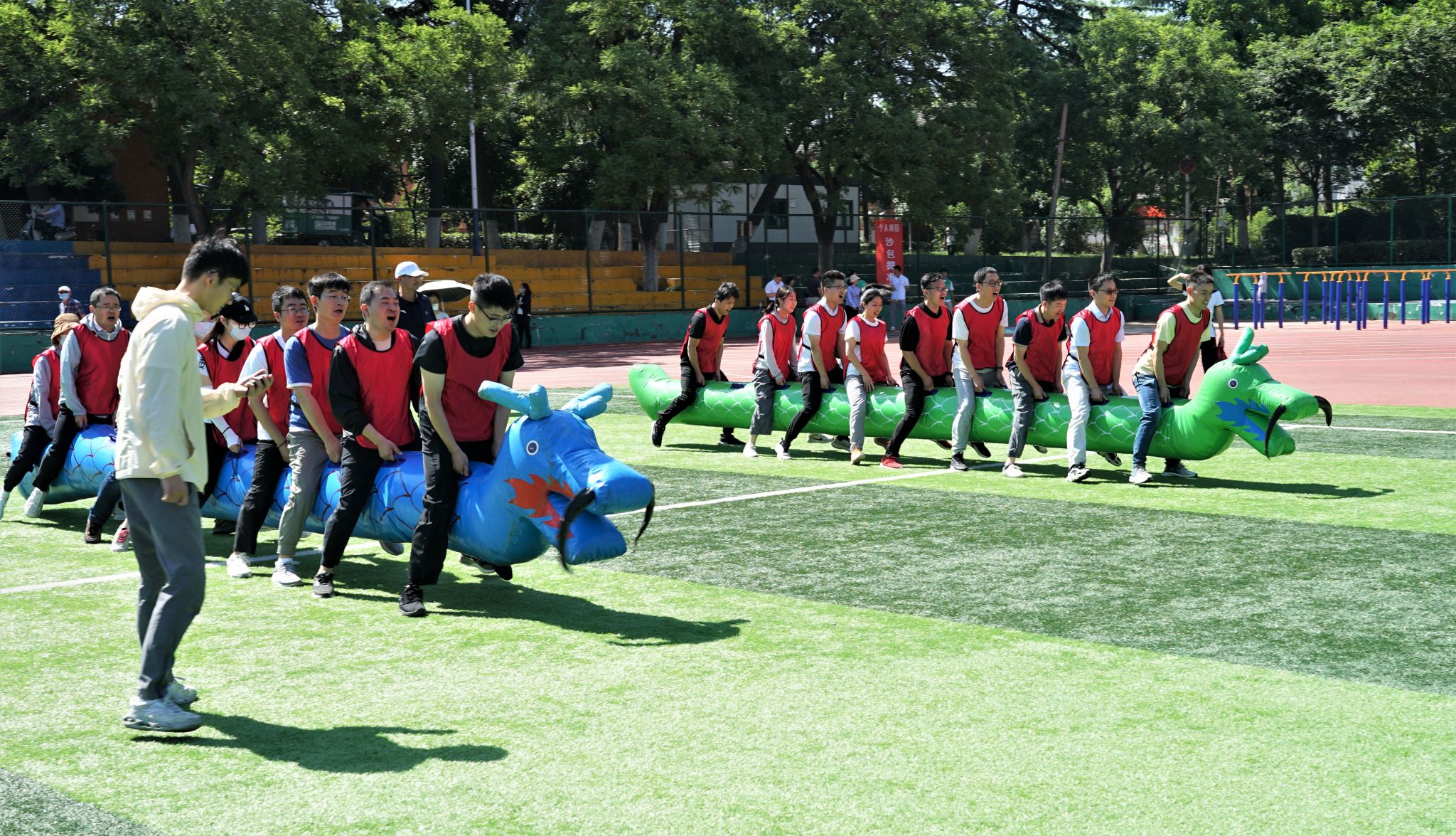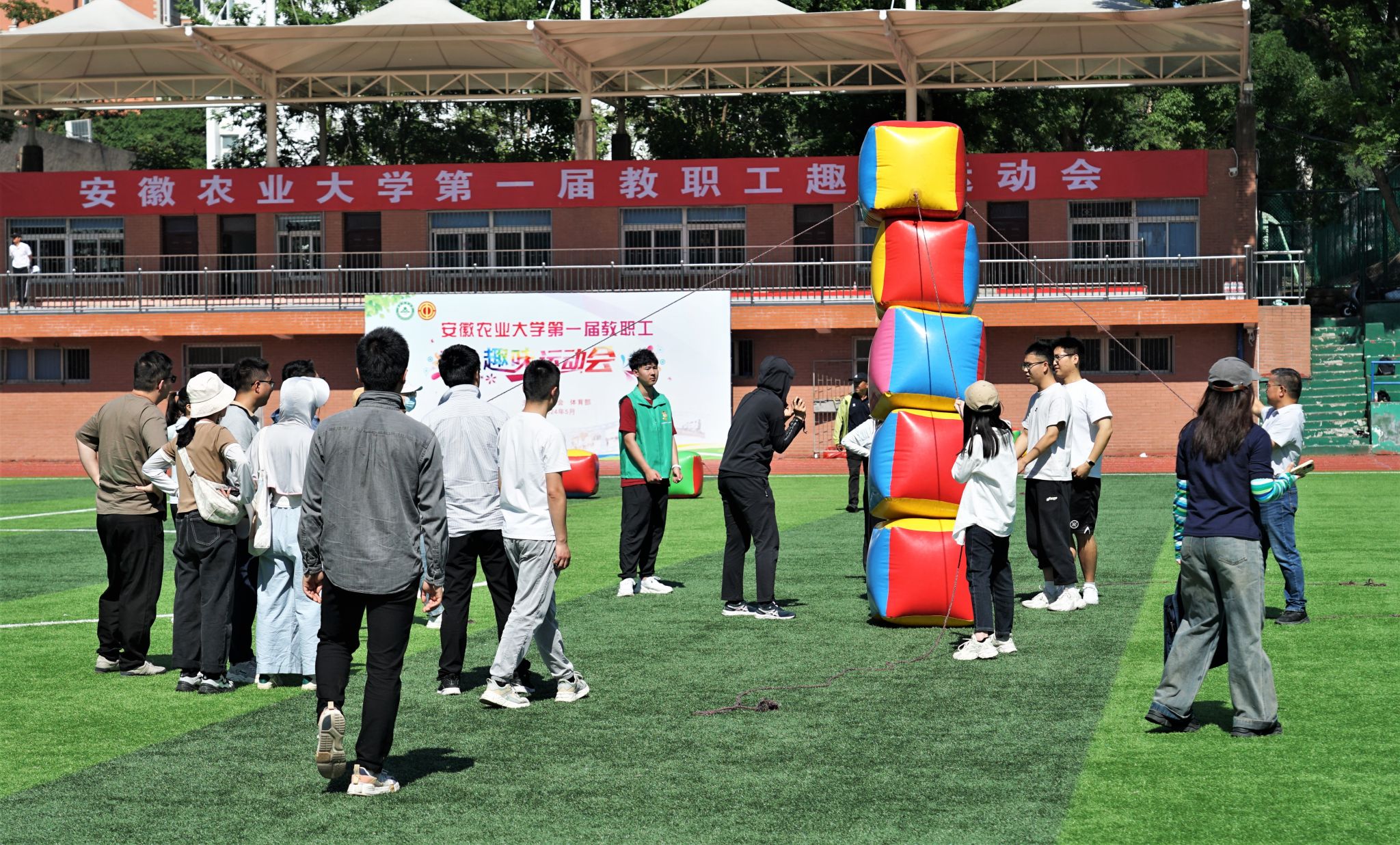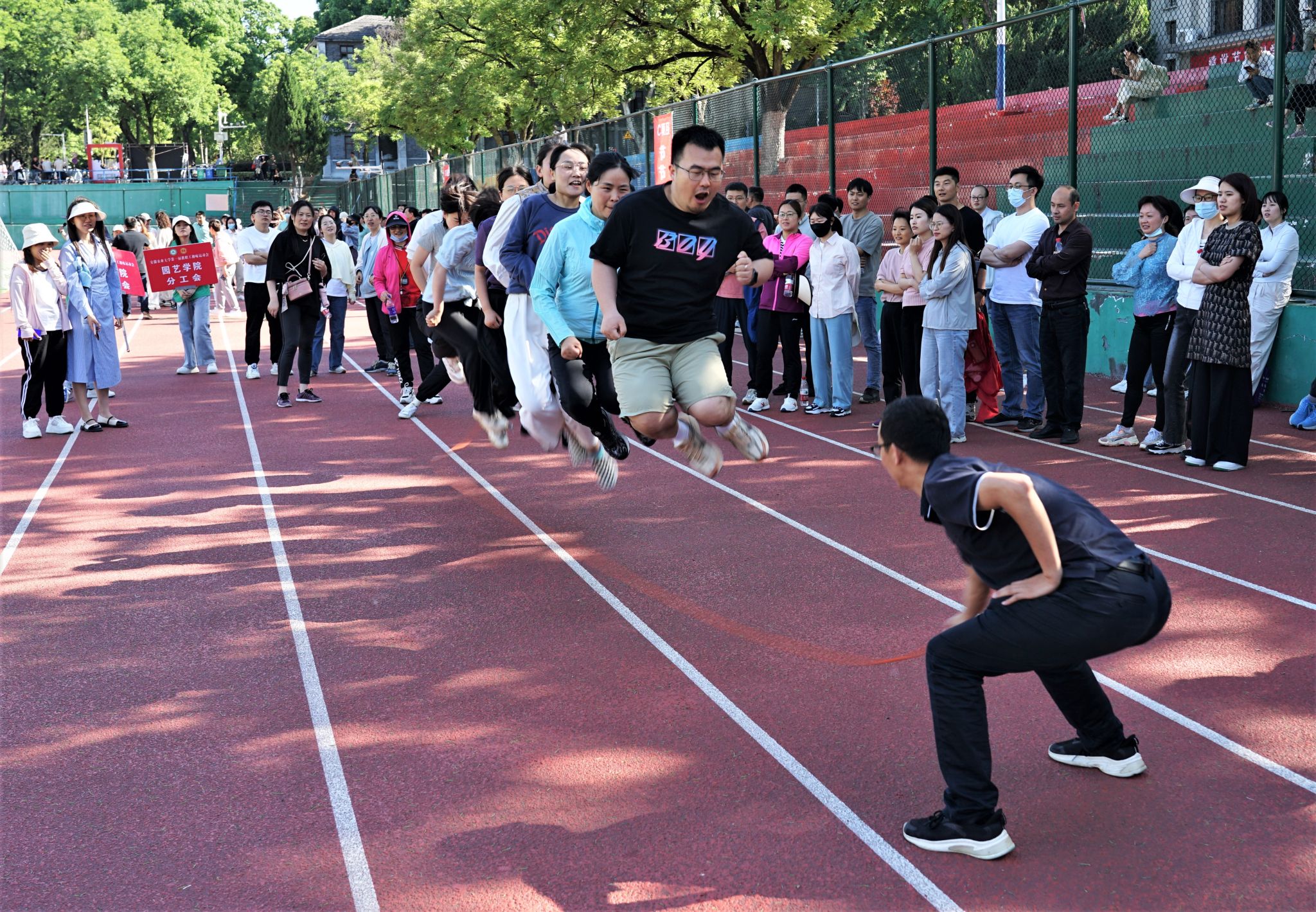 本次运动会项目集趣味性、娱乐性、协作性和竞技性为一体,包括协力云梯、节节高升、运动火炬、龙腾万里和跳大绳5个团体项目和沙包掷准1个个人项目。经过角逐,材料与化学学院和总务部获得团体一等奖,动物科技学院、机关二工会和工学院获得团体二等奖,植物保护学院、资源与环境学院、信息与人工智能学院、茶与食品科技学院和生命科学学院获得团体三等奖。