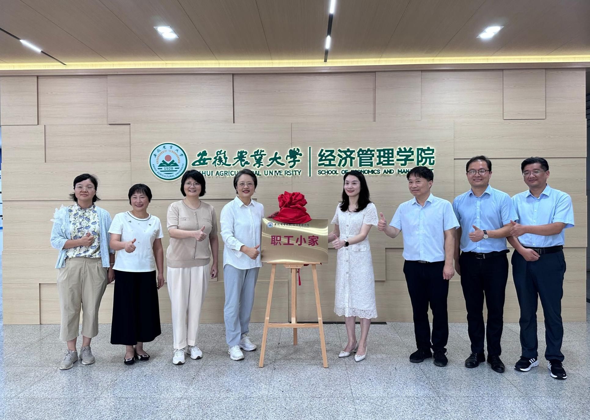 本网讯 9月10日安徽农业大学经济管理学院隆重举行“职工小家”揭牌仪式。校党委常委、副校长李红,工会主席姚莉出席揭牌仪式并实地参观。仪式上,李红对学院职工小家落成启用表示热烈祝贺,并希望以此为契机,让工会关怀落地生根,将职工小家成为学院教职工放松身心、交流感情、凝聚力量的温馨港湾。