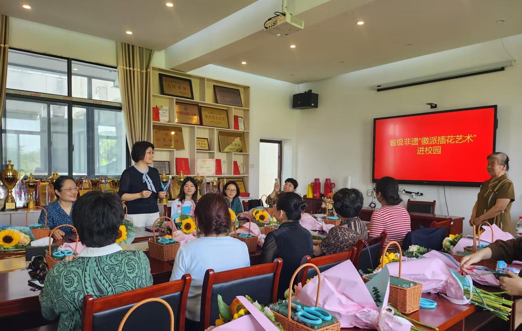 本网讯 为庆祝中华全国总工会成立100周年,迎接“五一”国际劳动节,4月18日下午,校工会、校妇联邀请全国模范教师、安徽省省级非遗项目“徽派插花艺术”传承人、我校林学与园林学院退休教授付玉兰及其传承团队,在工会304会议室举办省级非遗“徽派插花艺术”进校园活动,校党委常委、副校长李红出席活动,校工会主席姚莉和部分插花爱好者参加活动,活动由校妇联负责人姬惠惠主持。