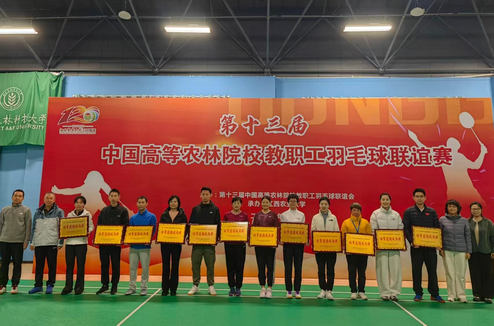 本网讯 11月17日至19日,第十三届中国高等农林院校教职工羽毛球联谊赛在江西农业大学隆重举行。正值该校120周年校庆之际,赛事吸引了包括中国农业大学、华中农业大学、华南农业大学等在内的20所高校近400名教职工参赛。我校派出由18名教职工组成的代表队,与江西农业大学、南京农业大学、西北农林科技大学、四川农业大学等兄弟院校同场竞技。选手们在赛场上展现出的拼搏精神与团队协作能力,赢得了广泛好评。