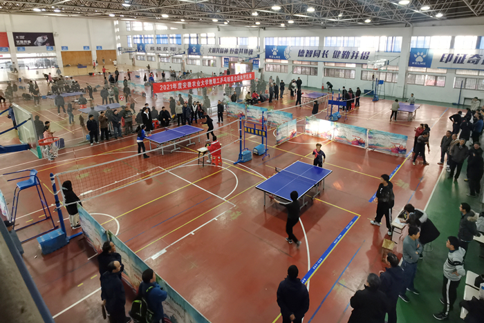 本网讯 为丰富教职工校园文化生活,提升乒乓球爱好者的竞技水平,为教职工提供一个以球会友、展现团队合作精神的舞台。由工会主办,体育部、教职工乒乓球协会承办的2021年度教职工乒乓球混合团体对抗赛于12月4、5日在校室内体育馆举行。全校20支部门工会代表队、近200名教职工运动员以及一批乒乓球爱好者,参与了这一活动。校党委常委、副校长韩军参加了比赛并出席颁奖仪式为获奖代表队颁奖。