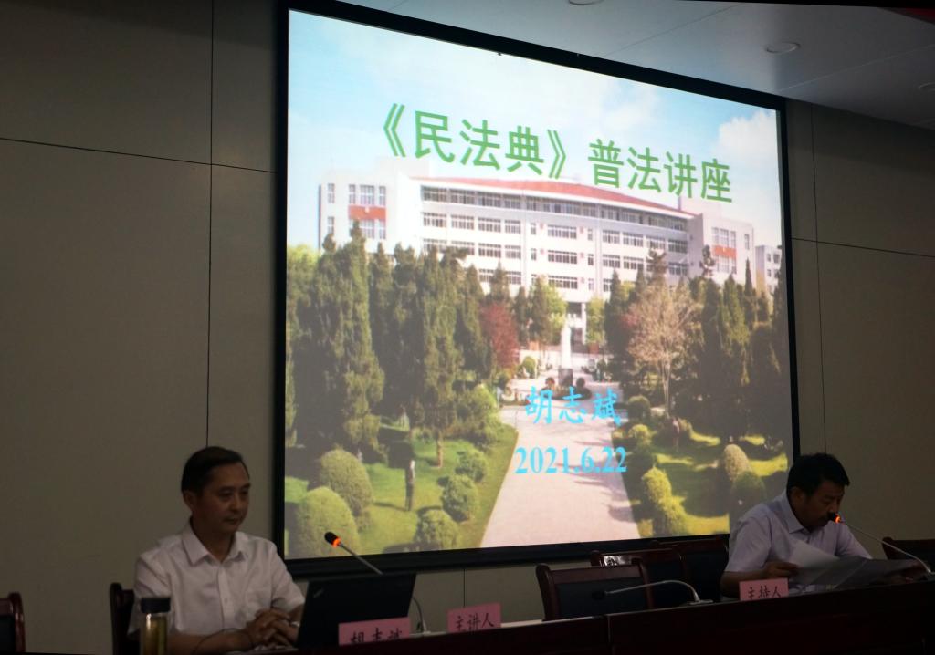 本网讯 622日下午,我校在图书馆第二报告厅举办《中华人民共和国民法典》(以下简称“《民法典》”)专题普法讲座,我校人文社会科学学院胡志斌教授担任主讲,各部门工会委员和师生代表在现场聆听了讲座,校工会副主席宋齐主持了此活动。