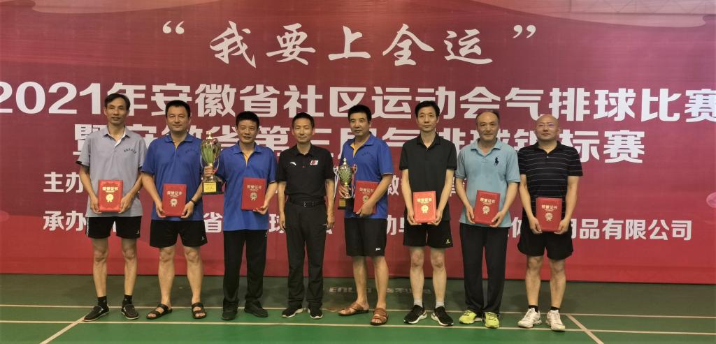 本网讯 2021年6月3日,由安徽省体育局、安徽省体育总会主办的“我要上全运”-2021年安徽省社区运动会气排球比赛暨安徽省第三届气排球锦标赛在安徽省体育馆开赛,我校教职工男子气排球队勠力奋战,勇夺第一名,并获得代表安徽省参加今年6月中旬在山东省举行的中华人民共和国第十四届全国运动会气排球项目的比赛资格。