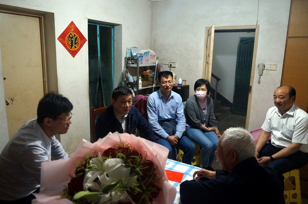 本网讯 5月26日下午,在中国共产党成立百年之际,安徽省教科文卫体工会主席吴海明、处长李晓燕一行专程来校看望慰问我校全国劳模、农学系退休老师丁超尘教授。校党委常委、副校长韩军、校工会主席刘惠东等陪同。