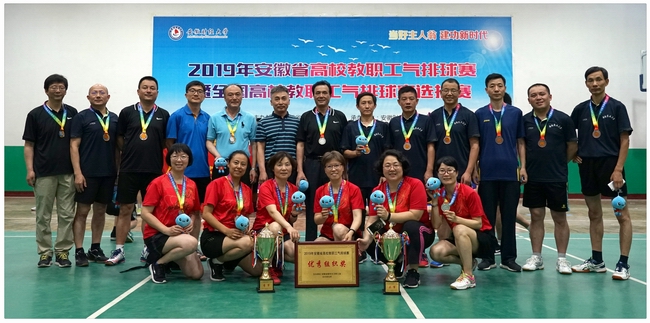 本网讯 6月15日至16日,由安徽省教科文卫体工会主办,安徽财经大学承办的2019年安徽省高校教职工气排球赛暨全国高校教职工气排球比赛安徽省选拔赛在该校西区体育馆隆重举行。我校教职工气排球队最终获得女子组亚军和男子组季军的好成绩。学校获得优秀组织奖。