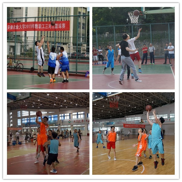 本网讯5月31日,我校教职工三对三篮球比赛最后一个比赛日的争夺在校室内体育馆进行,相关部门工会师生以及部分篮球运动爱好者到场为球队加油助威。
