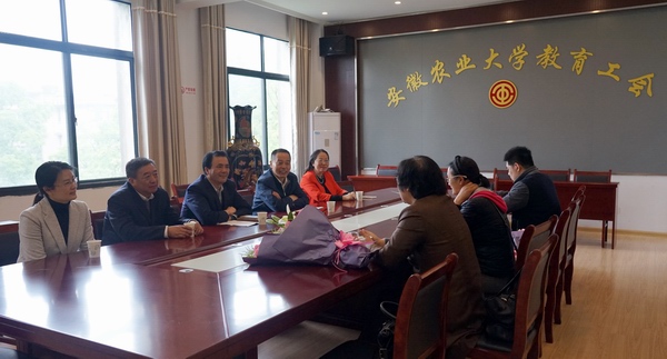 在安徽农业大学教职工活动中心会议室,凤桦与我校两位身患癌症的教职工进行了亲切的座谈,凤桦仔细询问了两位老师的病情和生活状况,了解了他们的工作现状与面临的困难,并代表省教科文卫体工会为他们送上了祝福和慰问金。凤桦赞扬了两位老师坚强乐观的人生态度和积极向上的生活热情,鼓励他们坚定信心,配合治疗,保重身体,早日康复,继续为安徽农业大学的发展建设做出贡献。