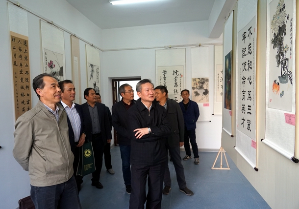 10月31日下午,校党委书记江春率部分校领导和校办公室、党委宣传部等部门的负责同志参观了书画摄影展。校领导们充分肯定了本次两校书画展活动的开展。