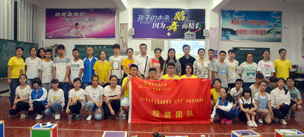 本网讯根据《国务院关于加强农村留守儿童关爱保护工作的意见》要求,和全总、省总女职委有关关爱留守儿童工作的部署,2017年7月3日至7月7日,校工会女工委组织我校女教授及大学生志愿者一行18人,前往泾县稼祥中学面向初一的150余名留守儿童,开展了主题为“安农助力梦想,爱心点燃希望”的“三下乡”志愿服务活动。
