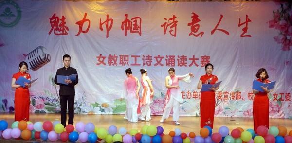 此次诵读比赛共计27个节目同台竞赛,有近百名教职工参与。从慷慨激昂的《女性之光》到温婉深情的《致橡树》,从盛世大唐的《将进酒》到风流民国的《你是人间的四月天》,从书写壮丽山河的《灿烂华夏》到感慨时光岁月的《岁月是首歌》,从教学科研女教师到党政管理女干部,从美丽的白衣天使到可亲的幼儿教师,大家结合各自的岗位特点筛选题材,或创作,或改编,或重温经典,在繁忙的工作之余认真排演,将诗文与武术、舞蹈、乐器相结合,以饱满的状态深情的诵读,感动着别人,也激励着自己,为观众奉献了一场视觉和听觉的盛宴。