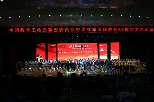 10月30日,我校教职工合唱团赴合肥幼儿师范高等专科学校参加了由安徽省教育工会主办,安徽大学艺术与传媒学院承办,各高校、附院协办的安徽省高校、附院教职工纪念红军长征胜利80周年文艺汇演。安徽省总工会党组成员、副主席李素萍出席演出活动并致辞。在皖各高校、附院分管领导、工会主席和师生代表700余人观看了演出。