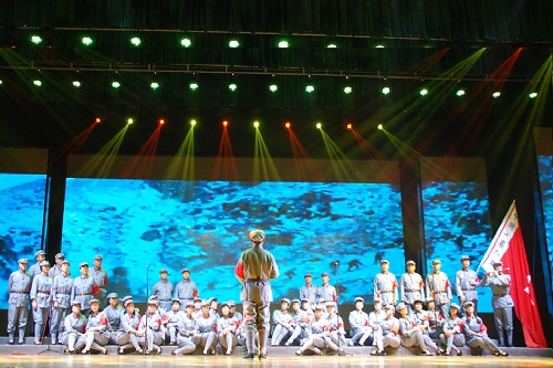自7月下旬,接到文艺汇演节目征集通知之后,校教育工会、校教职工合唱团经过认真研究和精心准备,选送的合唱曲目《过雪山草地》、《到吴起镇》顺利的被晚会主办方采用。接下来,合唱团全体成员克服各种影响因素,牺牲了个人休息时间,严格坚持训练制度,努力提升合唱水平。经过3个月的认真排练,终于在文艺汇演时,为观众们呈现了一场高水平的合唱表演,引起了全场的阵阵掌声。
