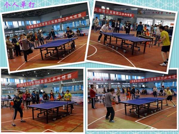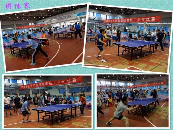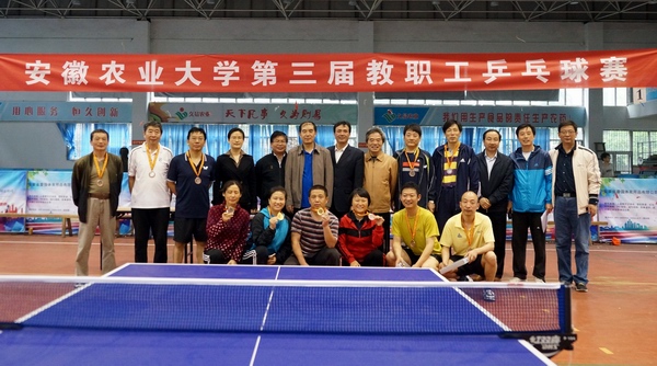 经过两天激烈角逐,安徽农业大学第三届教职工混合团体对抗赛机关三工会代表队勇夺冠军,继续教育学院、人文社会科学学院和林学与园林学院分获亚军、季军和第四名;茶与食品科技学院、经济管理学院、理学院和动物科技学院获得第五名(并列)。2016年度教职工乒乓球单打比赛:尹良夺得男子单打冠军,杨奇峰、王怀林、花日茂、刘盛全、吕大鹏、陈建春、姜北龙分获二至八名;谢英夺得女子单打冠军,靳文华、吴海琴、胡克玲分获二至四名。