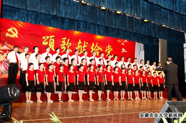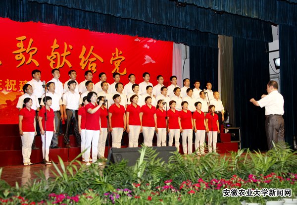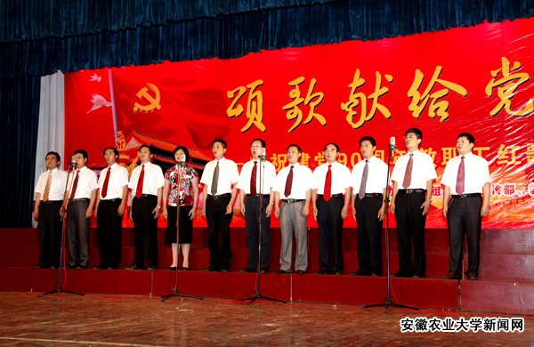 “没有共产党就没有新中国, 没有共产党就没有新中国, 共产党辛劳为民族, 共产党他一心救中国……”伴随着校领导和党委常委的深情礼赞,红歌演唱拉开帷幕。《今天是你的生日,中国》、《走向复兴》、《祖国不会忘记》、《七律·人民解放军占领南京》……经典红歌荡气回肠,奏响了激扬奋进的时代旋律。由我校教职工组成的25个合唱队,以饱满的热情,抒发了对党的无限深情,歌颂了党的丰功伟绩,进一步坚定了永远跟党走的信念。