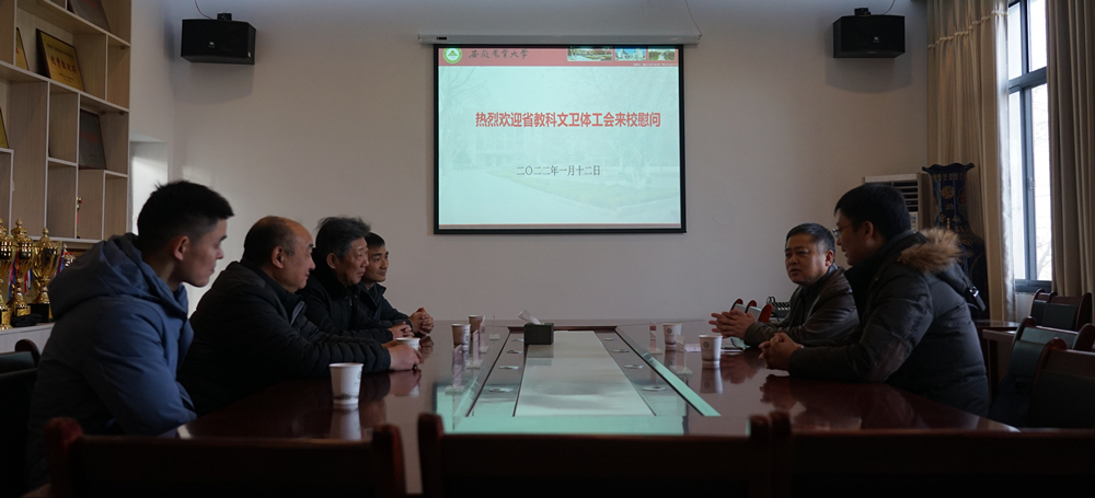 本网讯 2022年新春即将来临之际,近日,省教科文卫体工会组织开展“两节”送温暖工作。省教科文卫体工会副主席姚德勇等一行来校走访慰问我校2021年度因重大疾病、重大意外事故等原因造成家庭生活困难的职工。校工会主席刘惠东、园艺学院党委书记朱绍友、困难职工所在教研室负责人陪同慰问。