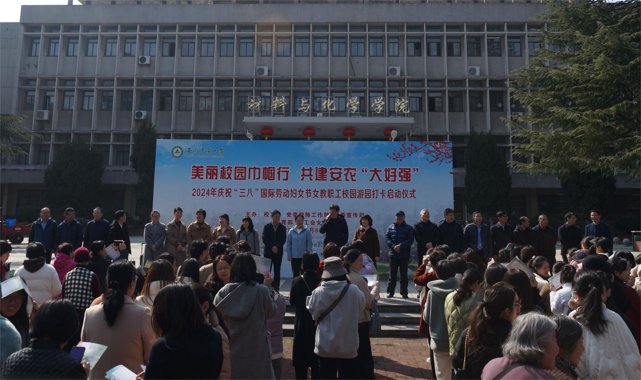 春满三月天,巾帼绽芳华。为庆祝第114个“三八”国际劳动妇女节,3月8日,我校举办“三八”节女教职工游园暨学校发展建言献策活动。校党委常委、副校长李红,校党委常委、副校长韩军,党委原副书记裴树东全程出席活动,韩军在活动启动仪式上发表热情洋溢的致辞,校工会委员会委员、有关职能部门负责人、各分工会主席及女教工代表参加启动仪式,学校共计1100余名女教职工参加了游园打卡活动。