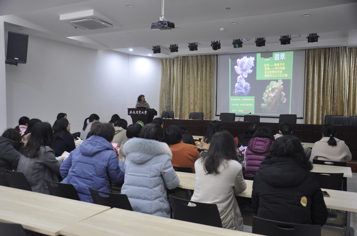 本网讯 阳春三月,草长莺飞。为庆祝第111个“三八”国际劳动妇女节的到来,进一步丰富教职工文化生活,3月8日下午,资源与环境学院举办“春暖花开季 浓情女神节”庆祝“三八”国际劳动妇女节活动,活动邀请学院朱江副教授为全体女教职工作宝玉石鉴赏专题讲座,学院近40名女教工到场参加。