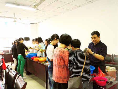一片片浓香的粽叶包进了教工的团结精神,一颗颗香甜的蜜枣包出了教工的幸福生活,一个个纤细的线绳拉紧了教工的深厚情谊。
