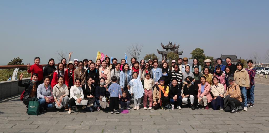 在中庙镇,女教工们乘船登上峔山岛开展环岛登山徒步活动,游览了岛上秀丽风光和南塘、圣妃庙、文峰塔等名胜古迹。之后,又来到长临河古街感受当地风土人情。