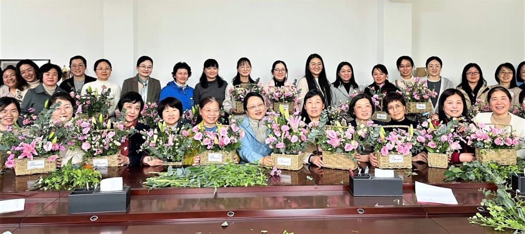 李红对我院女教工在学院教学、科研、管理等工作中辛勤的劳动,做出的贡献表示充分肯定,并为大家送上节日的祝福,希望大家立足岗位,快乐工作,巾帼建功。在花艺老师的指导下,女教职工们剪叶、修枝、构思、造型,把一朵朵变成一件件花艺作品。通过本次活动不仅让女教工们愉悦身心,增进了团结、友谊,又充分展现学院女教工良好精神风貌,增强了凝聚力、向心力。
