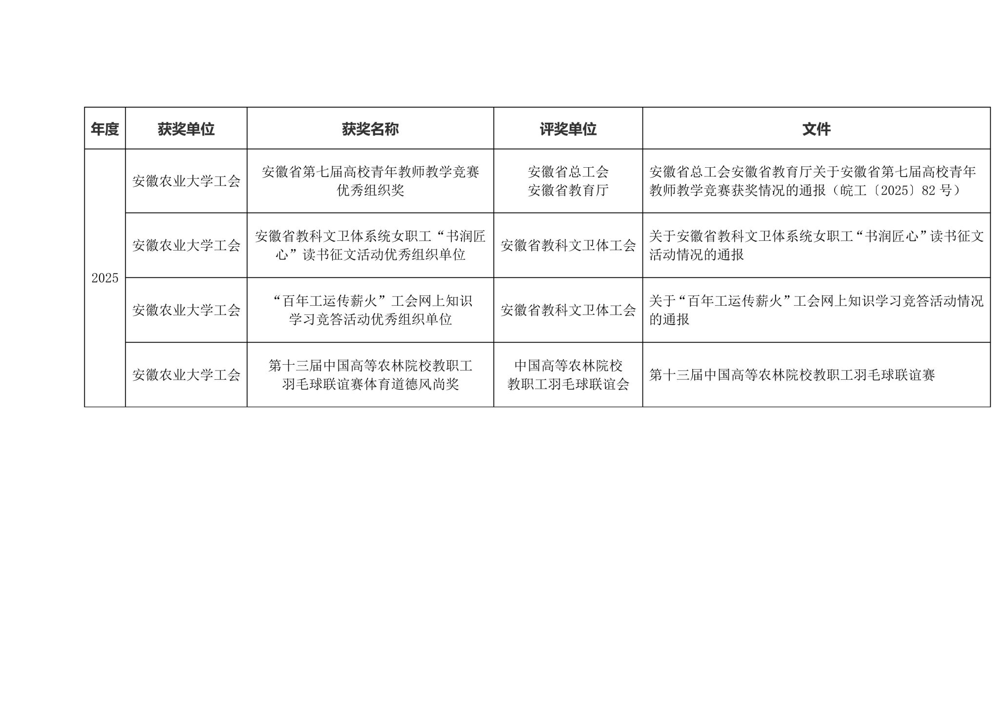 安徽省总工会安徽省教育厅关于安徽省第七届高校青年教师教学竞赛获奖情况的通报(皖工〔2025〕82号)