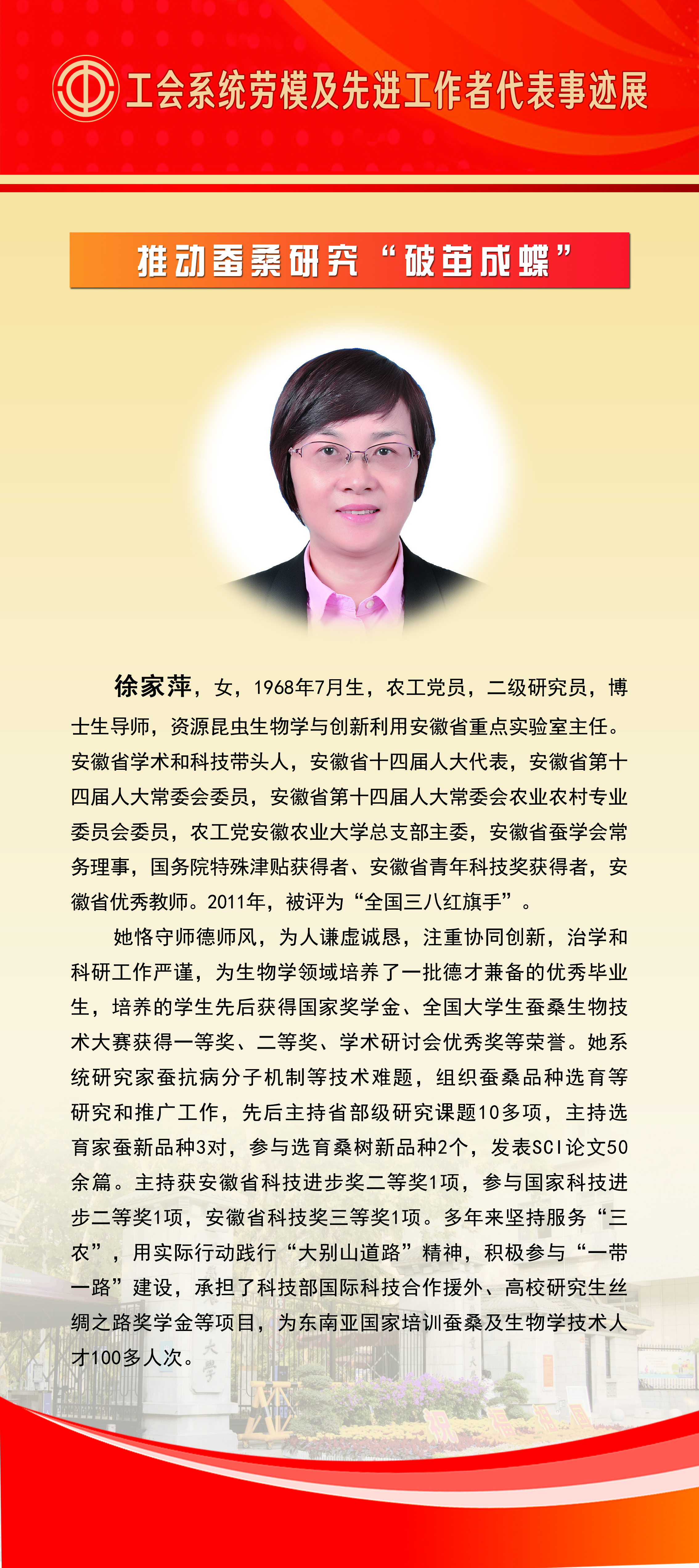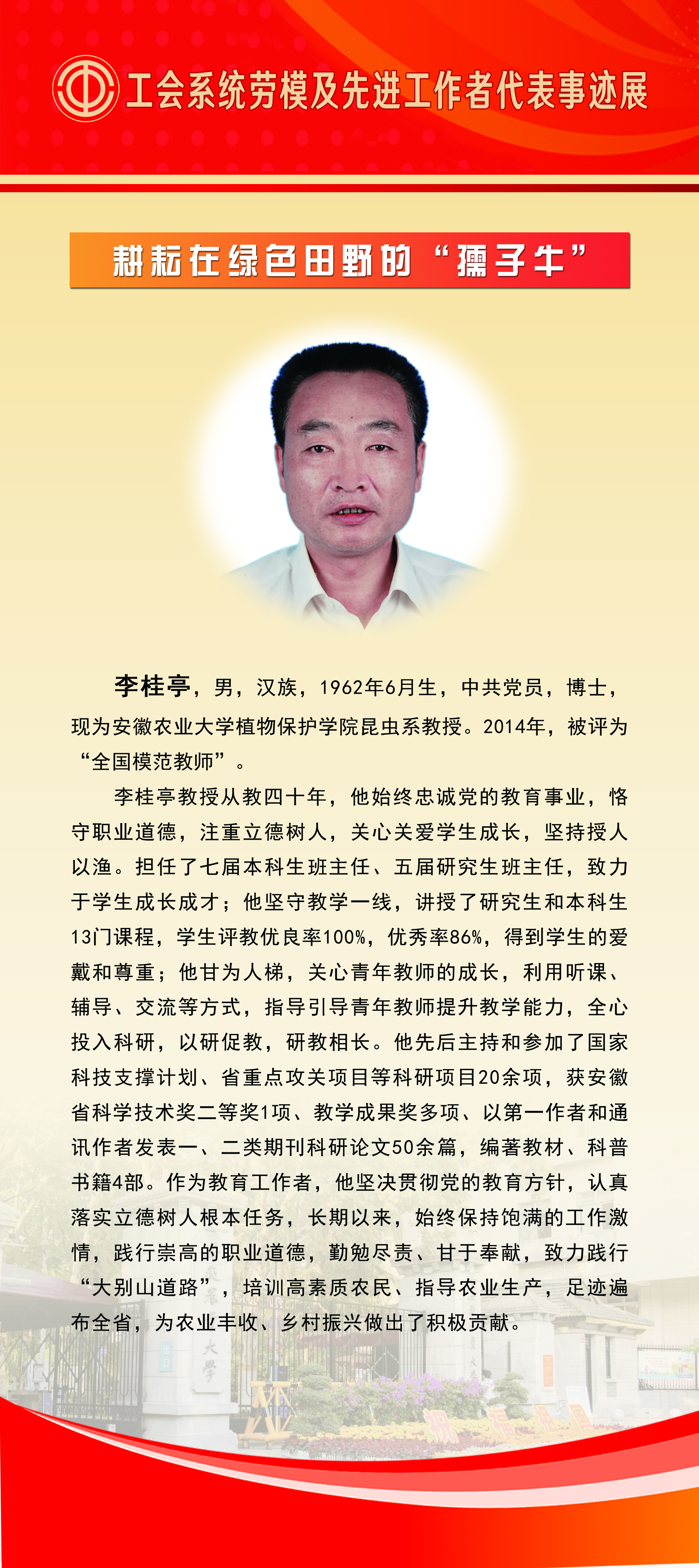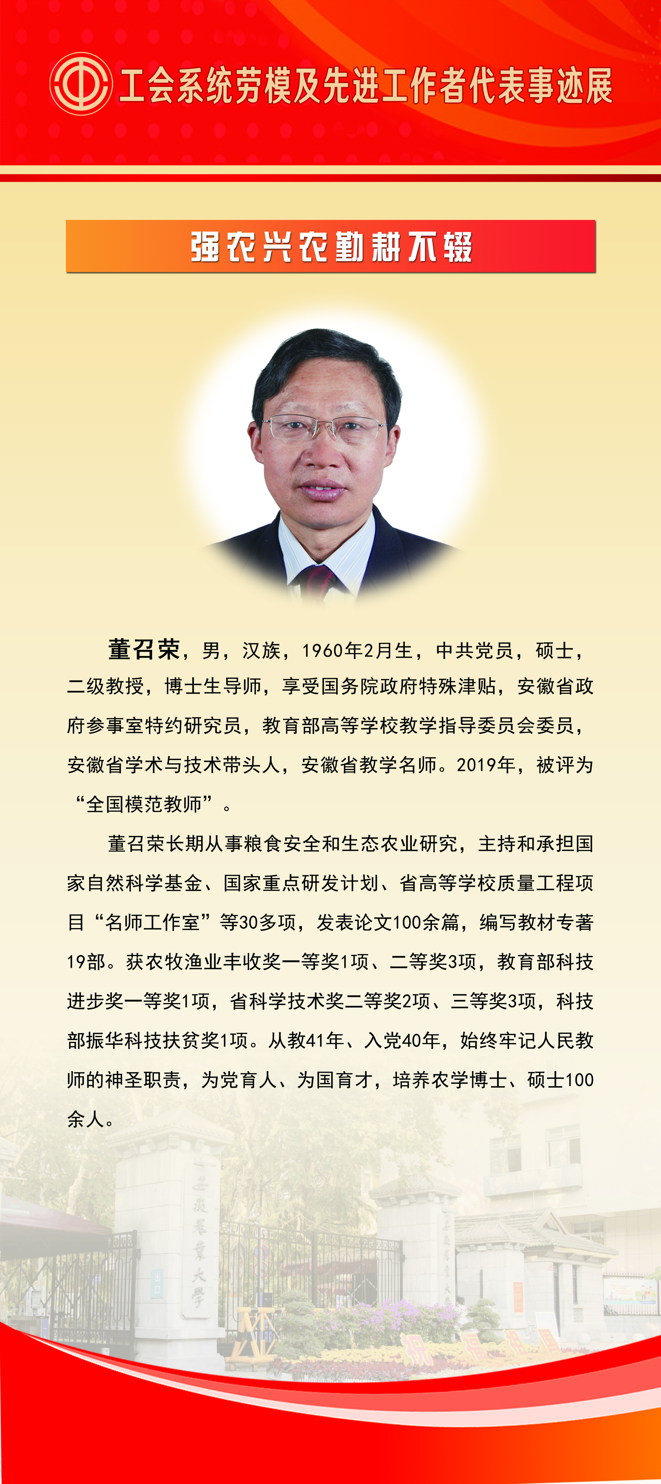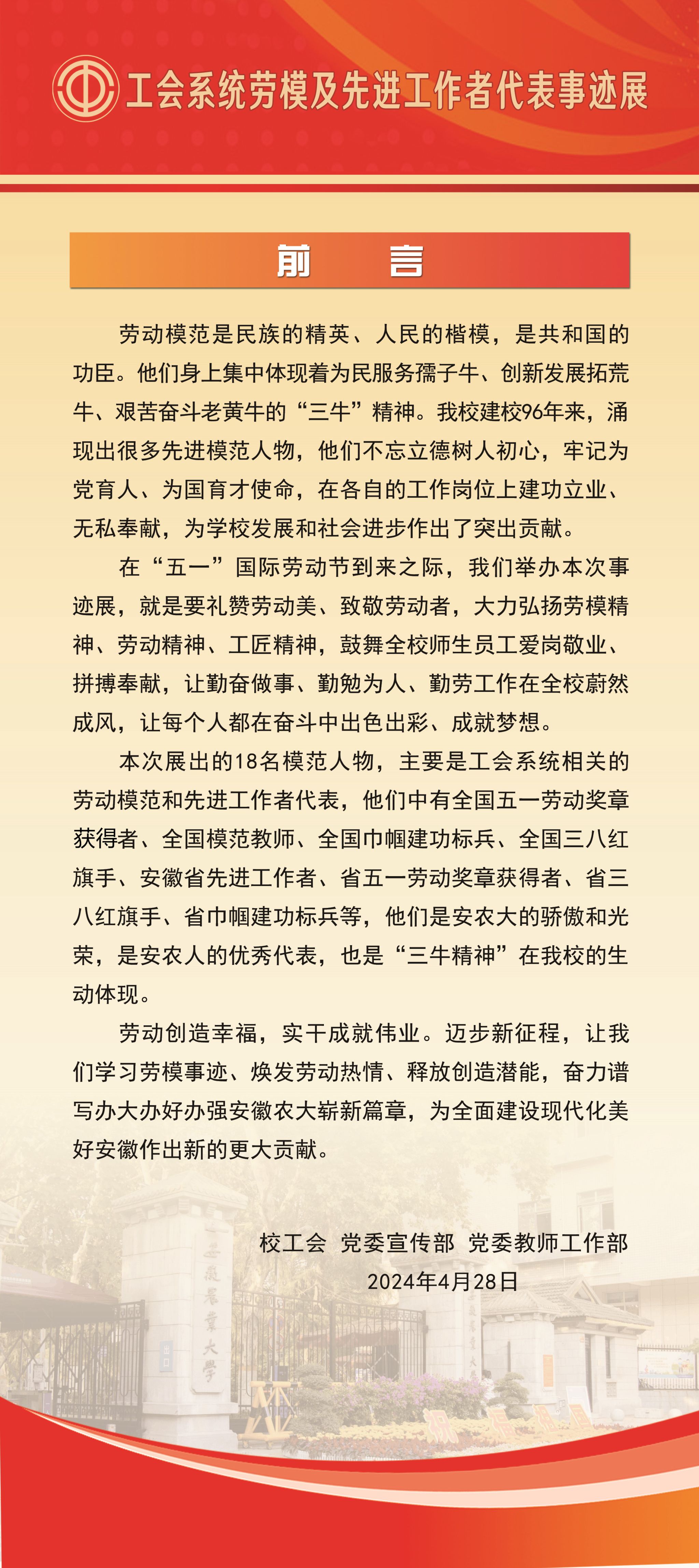 上一条:百年工运情 奋进安农人——庆祝中华全国总工会成立100周年工会系统先进集体事迹展 下一条:全国劳动模范、先进工作者