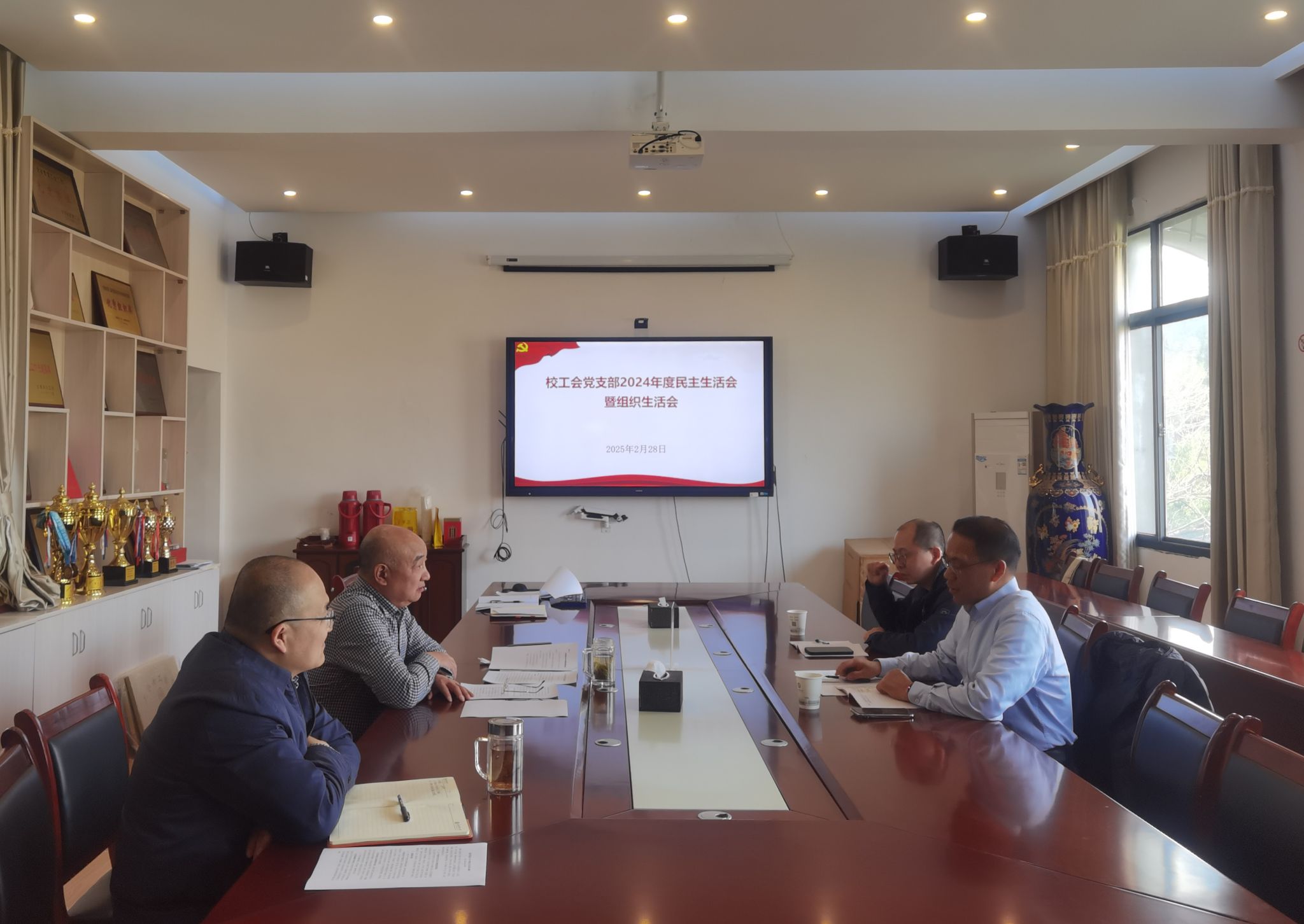 本网讯 2月28日下午,校工会党支部召开2024年度民主生活会暨组织生活会,并开展民主评议工作。会议由支部书记刘惠东主持,由机关党委委员,国资处处长、采招中心主任孙伟到会指导。