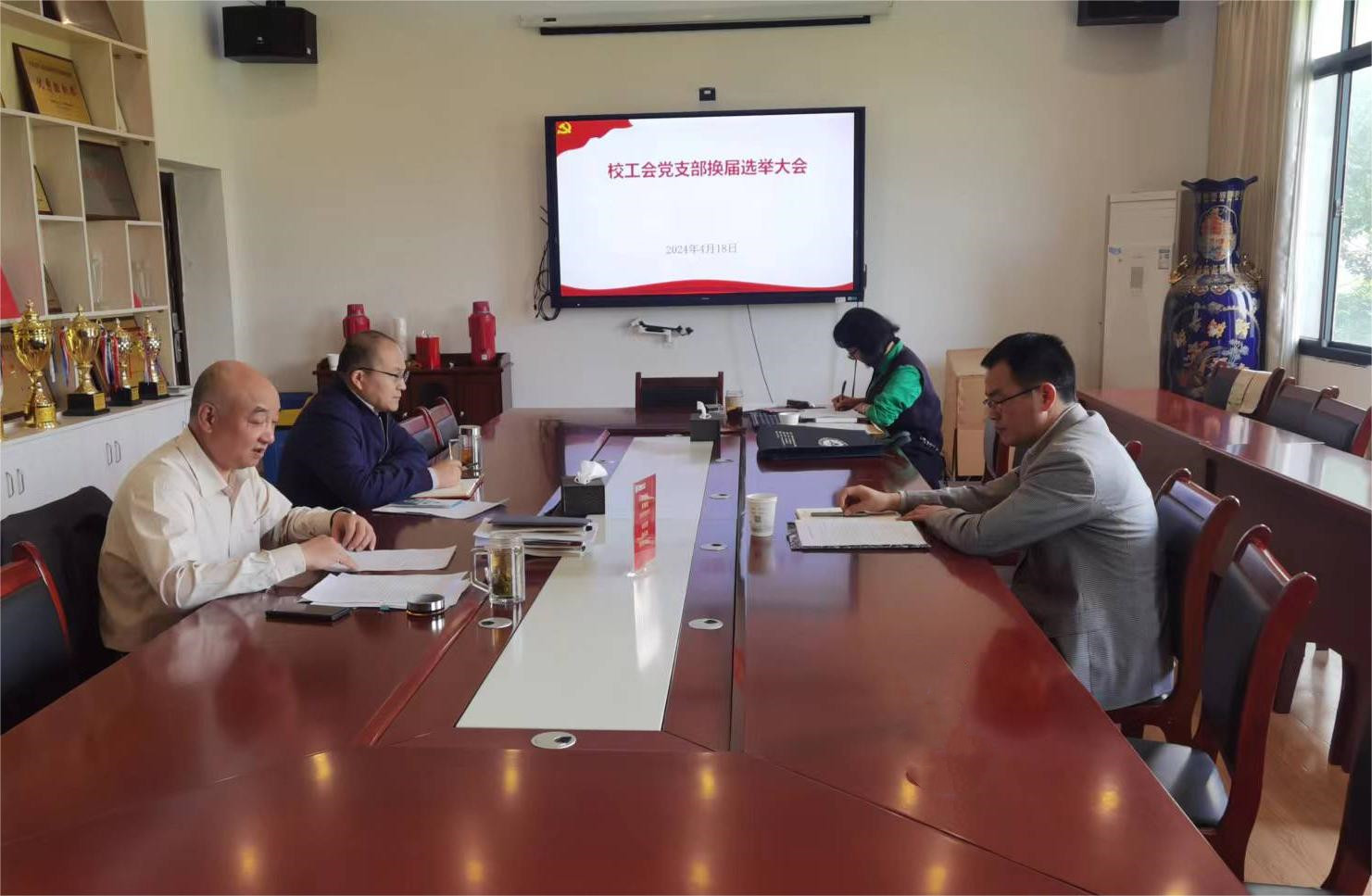 本网讯 4月18日下午,校工会党支部召开换届选举大会。会议由支部书记刘惠东主持,校机关党委委员、组织部副部长吴永红到会指导。